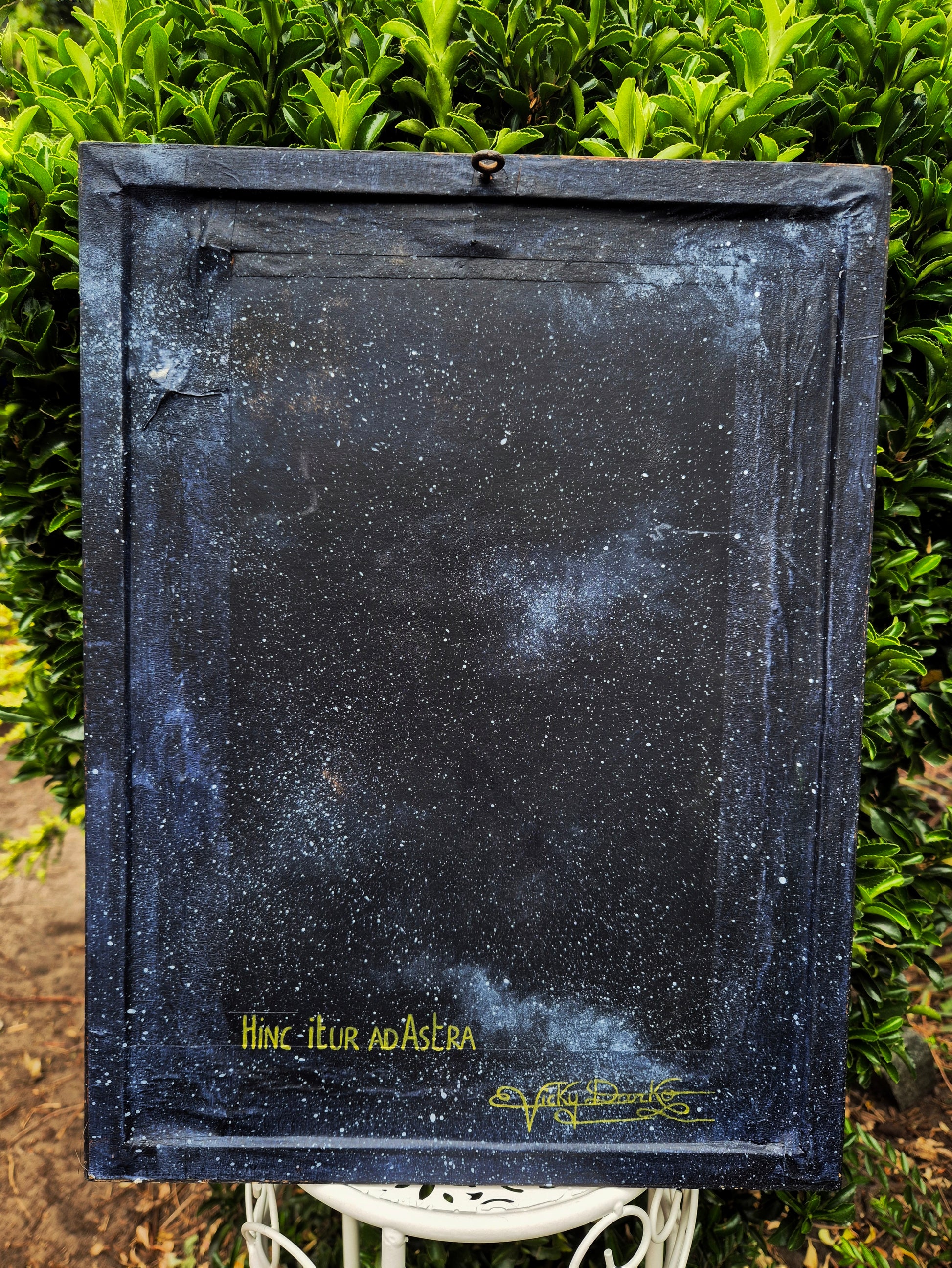 Each of my original artworks features a hand-painted galaxy on the backside as a signature touch, these hidden galaxies are a special hallmark of my creations, adding an extra layer of mystery and wonder to every piece.